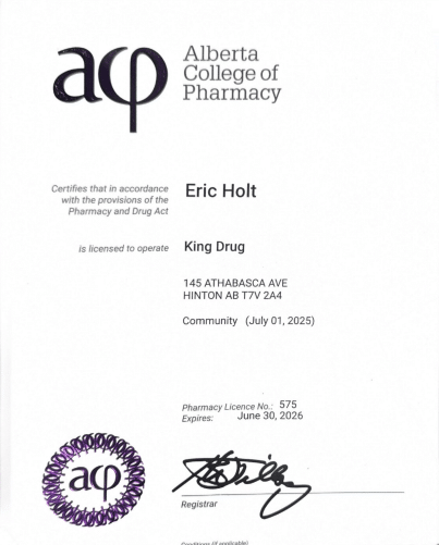 KING DRUG HAS BEEN INDEPENDENTLY OWNED AND OPERATED IN HINTON, AB FOR OVER 50 YEARS.